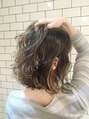 毛先中心にハイライトを入れ、髪の癖に合わせてドライカットをしているので、洗いざらしでもいい感じにキマります。