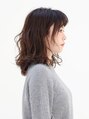 毛先中心に動きをつけ、顔型補正効果のあるパーマスタイル。丸顔やエラが気になる方も、自然にカバーします。ダークトーンのアッシュ系カラーに細かくハイライトを入れ、光が当たった時の透明感・抜け感を演出。