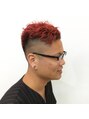 パンチの効いた刈り上げスタイル。レッドの髪色でより個性を。