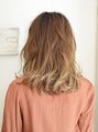 人気のバレイヤ―ジュカラー。秋らしいフォギーベージュで柔らかい質感に仕上げつつ、ベースは9トーン・毛先は12トーンのグラデーションで、こなれた雰囲気に。中間から毛先にかけてデジタルパーマをかけて、動きをつけます。【EARTH大井町店】
