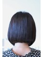 髪型のラインがきれいに出るボブスタイル。前下がりにする事でシャープさを演出。マットでくすみを出しながらも艶感アップ