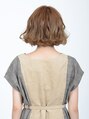 カールをつけたショートボブ。段が入っていないワンレングスシルエットが重く見えすぎないよう、波ウェーブで軽さをプラス。カラーはオーガニックカラー・11トーンのアッシュベージュで赤味のない外国人カラー。