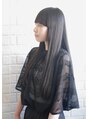 ワンレンにカットした毛先と厚めにおろした前髪がポイントです*ストレートや縮毛矯正で髪が傷んでしまいそうな方には根元だけかけることをオススメしてます☆綺麗に伸ばしたい方、ぜひご相談ください♪
