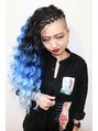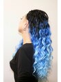 ルーズウェーブなエクステンションを根元のみ三つ編みで編みこんだボリューミーなスタイル。カラーは黒からオーシャンブルーに変わるオンブレカラー。ブレイズ、エクステンションのご予約は一度お電話にてご相談下さい。