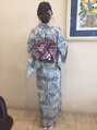 浴衣を着て花火大会に行くので来店してくれました♪シンプルなスタイルですがくるりんぱを入れる事で可愛らしいスタイルに♪髪飾りが余ったので帯に付けました!