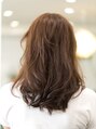 前髪をサアッとおろして、透明感のあるスタイルを引き立たせ、ヘアカラーの色合いもモデルさんのフェミニンな雰囲気にピッタリ。上品な軽さを希望の方には顔型も問いません。