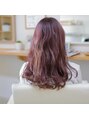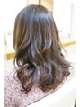 ベースは重めのグラデーションカット。表面にレイヤーで動きと軽さをつけ、質感をコントロール。パーマはスパイラル巻きでゆるふわに。カラーはピンクベージュでほんのりと赤みをプラスし、柔らかな質感を。