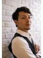 サイド刈り上げ、前髪は、流れやすくするため斜めのラインにカット。さらにパーマでイレギュラーな動きをプラス。他と差がつく小洒落た大人パーマヘア。