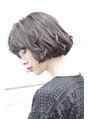 肩上のフラットなボブ。パーマをしっかりめに下に動きがでるようにかけます。前髪もパーマでくりっとカールをいれて、グリースなどでクシャクシャにスタイルングするとかわいいです♪