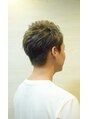 ソフトに刈り上げたツーブロックのアップバングスタイル!カラーはブリーチしてからアッシュゴールドをプラスしました!全体に量感を減らし動きのあるスタイルに仕上げました♪