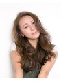 サイドがリバースのセクシーなイメージのロングヘア 耳あたりから動きのあるウェーブが大人っぽい印象を与えます。8トーンのアッシュ系が甘くなく、自立したかっこいい女性像を印象付けます。硬い髪質の方は形状記憶ドライカールとの相性が良いです!