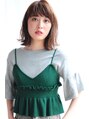 厚めのボブベースに毛先の軽さを入れ外ハネになりやすいようにカット。カラーは表面に細かめハイライトをいれ柔らかさを出します。重めヘアも軽さのある柔らかヘアに。
