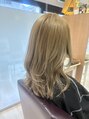 毛先を2回ブリーチし、表面にもハイライトを入れなじませました。