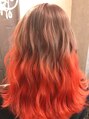 マニックパニックでオレンジレッドグラデーション☆鮮やかなグラデーションでお洒落切りっぱなしロブスタイルです!仕上げはウェーブでラフに☆