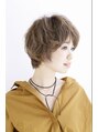 可愛らしさと明るい表情の出る外はねパーマがポイントのショートスタイル。明るめのベージュにブラウンをプラスしたカラーリングでオシャレ度を演出します。