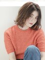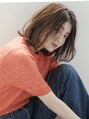 女性らしいニュアンスのとろみボブ。ゆるやかに揺れるようにドライカットで毛先の質感を整えて。イルミナカラーで柔らかさと透明感をプラス。毛先にワンカールのパーマをかけてラフに散らして仕上げます。