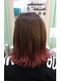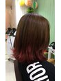 外ハネボブに暗めのローライトカラーと毛先にレッド系グラデーションカラーでお染しました!外ハネスタイルを強調するデザインカラーです♪