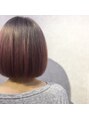 ブリーチした髪に根元をアッシュグレイに毛先はピンクアッシュに染めました。カットは乾かすだけで内巻きになるあごラインのボブに♪