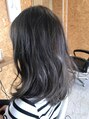 根元の黒髪が結構伸びている状態から根元はトーンアップ、毛先はトーンダウンさせ、中明度のアッシュに均一に染めました。光の当たり方で毛先は透けて見えたりもします!