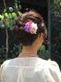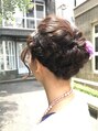 結婚式参列のヘアセットです。肩に少しかかるぐらいの長さのアップスタイルになります。あまり長くはないですが下の方でまとめあげるとアップスタイルもできます!