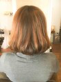 【お客様スタイルです】襟足すっきりワンレンボブ。気になる中の襟足のみ短く切って丸みの出やすいカットにしました。カラーは9レベルのアッシュ系で軽やかに見える色味にしています