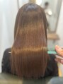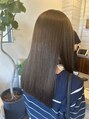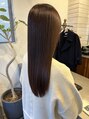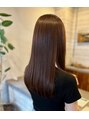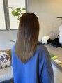 Iラインのしなやかなストレートヘアに、前髪をシースルーバングで柔らかな印象に