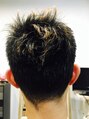 『…短くしたいが、自分でスタイリング出来ない…』>_<ソフトモヒカンスタイル☆サイドとトップをつなぐラインを、メリハリつける為に、前に向かってドライ!!トップは立たせました!!