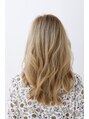 ハイトーンのカラーリングと大きめのウェーブを組み合わせた外国人風スタイルです。