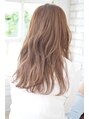 ローレイヤースタイルのミディアムベースです。表面に少し動きが出るようにローレイヤーをいれ、全体的に量感を減らし前髪はセンターで分けサイドに繋げます。10トーンのミルクティーベージュです。ベージュカラーにする事で柔らかさと透明感を演出★
