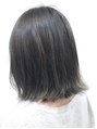 切りっぱなしボブ。伸ばしかけでハネてしまう方にもオススメです。カラーはモノトーンとブルーを使ったスモーキーアッシュにボブ