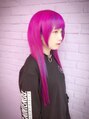 TORIENAちゃん来てくれました。ブリーチリタッチして、インナーにショッキングブルー、全体は、ピンクにして、パープルとピンクのエクステをつけました。来週、アストロホールでワンマンも控えて気合い入った色になりました。
