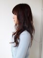 暗髪で 清楚感や大人感をだしてみました。ベーシックなAラインロングスタイルに顔周りに細かなレイヤーを施すことで抜け感をプラス。そこに22mm-24mmロッドでゆる巻きに♪