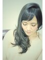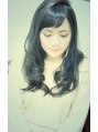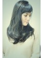 全体に重めのローレイヤースタイルで、顔まわりに少しレイヤーをいれ、巻いた時に動きがつくように!カラーはアッシュベージュで秋冬カラーに♪今流行りのナナメ前髪はかわいらしさプラスです!