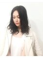 大きめのウェーブで、ラフにくずして脱力感をフォワードとリバースのMIXウェーブに。前髪のかかり具合、髪の毛、表情の透明感もポイント