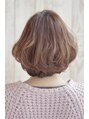グラデーションボブベース。トップはレイヤーを入れる。前髪は流しやすいように鼻の下で長めにカット。パーマは17ミリから21ミリで1から1.5回転の毛先巻。カラーはピンクベージュに。