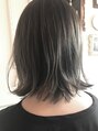 切りっぱなし風ボブに太いメッシュと細いメッシュを入れてグレージュをオン!全体的に暗めのカラーですが、全体的にブリーチしなくてもメッシュとで透け感をだして!