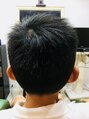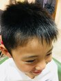 前にクセがあるので、クセに逆らわず、アシンメトリーなフロントに仕上げました☆サイドとバックは、バリカン使って、スッキリ!!(o^^o)