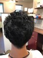 全体に強めにスパイラルパーマをかけました。サイドは2ブロックにして裾も刈ってスッキリさせました。