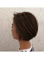 腰近くまであったロングをいさぎよくあごラインボブに!「simple is best」なスタイル。カーキアッシュにアイスミントなハイライトで秋冬感♪