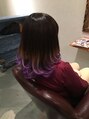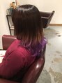 根元から暗めのアッシュから始まるグラデーションカラー!毛先はアクセントとして、毛先にライラックを入れました!