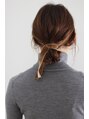 シナモンカラーがかわいい、鎖骨レングスを簡単にまとめたカジュアルアレンジです。