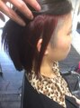 サイドの内側の刈り上げ部分はブリーチしてシルバーに、サイドからバックのインナーカラーは13レベルのレッド系カラーでベースを作りボルドーレッド系をON!