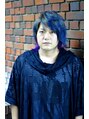 グレー系のピンクからネイビーへのグラデーション。インナーカラーでピンクとパープルをオン。もちろんブリーチはファイバープレックスで、ダメージを抑えて。
