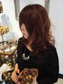 しっかりめのパーマでふわふわ感を。暖かみのあるアプリコットブラウンで、冬の愛されスタイルに!
