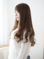 ロングのストレートヘアにデジタルパーマで毛先にカールをつけた大人スタイル。