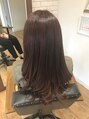 毛先に大きめのカールを施したナチュラルスタイル。オレンジ系のカラーでツヤ感をプラス。毛先にカールがあると一つにくくった時にも柔らかさが出ますよ」。