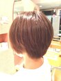 男の子っぽくなりやすいショート、丸みをつけて可愛らしくしました。カラーはフレンチセピアアッシュでツヤを出しながら落ちつかせました。