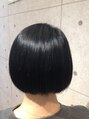 地毛より暗い色で前下がりボブ。見えないですが、周りは6mmのバリカンで刈り上げてます。