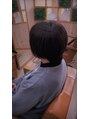 きれいな髪質をされているので、艶を生かしたショ-トボブスタイルに。トップにボリュ-ムを出すためにだんを入れて柔らかい雰囲気に。