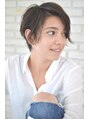 ショートレイヤーベースです。トップは頭の形が綺麗に見える様にレイヤーで丸みを出します。全体的に量感を減らし、前髪は長めにサイドに繋げカットしました。カラーはワンメイクで6トーンのベージュブラウンです。